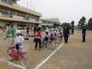 26日(水)、深谷警察署、深谷市役所、交通安全母の会のみなさんに安全な自転車の乗り方を教えていただきました。