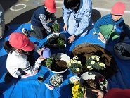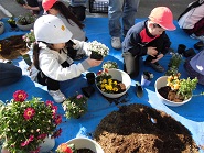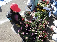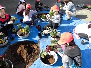 たくさんあるお花の中から、一人5つ好きな花を選んで鉢に植えました。自分だけの素敵な鉢植えができました。鉢は23日に持ち帰ります。