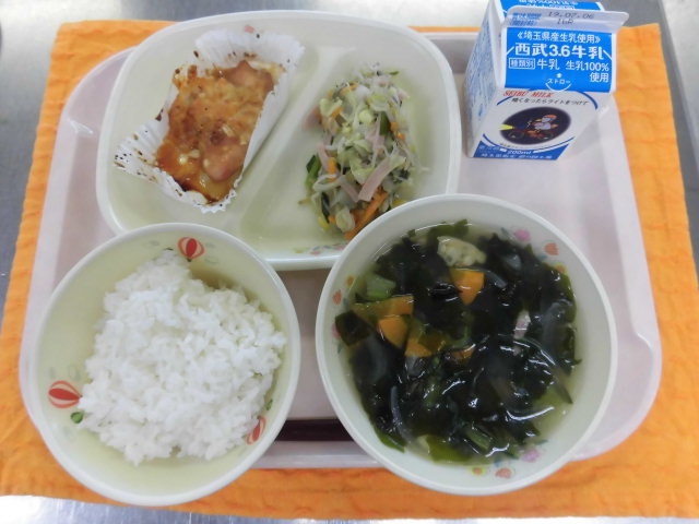 先生や子供達に大人気のチーズダッカルビです。調理員さんが上手に焼き上げてくれました。チーズと濃厚な醤油ダレが鶏肉にかかっていて、ごはんがモリモリ進みます。トックスープには韓国でポピュラーなトックというモチを入れました。子供達が食べやすい様に小さく切って調理しました。