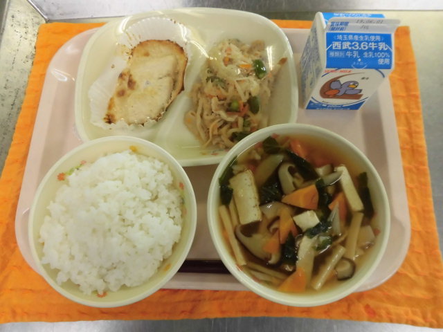 ★牛乳・ごはん・サワラの明太マヨネーズ焼き・切り干し大根の炒り煮・沢煮椀★