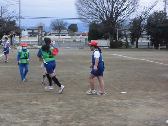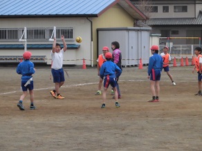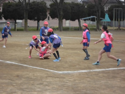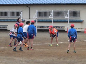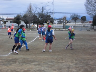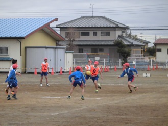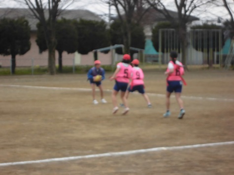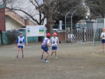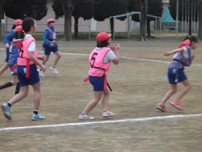 昨日の暖かさがうそのように寒い今日でしたが、5年生が校庭で元気にタグラクビーの授業をしていました。タグラクビーは、ラクビーを簡単にし、けがが起きないようにタックルを禁止したものです。タックルをしない代わりに腰につけたタグをとることでタックルをしたことになります。5年生は、ボールを追いかけ、タグをとることに必死に取り組んでいました。寒い中でしたが、みんなが汗をかきながら頑張っていました。