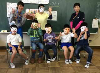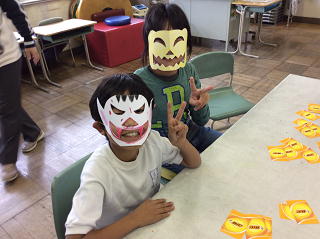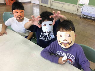 手作りのお面をつけて仮装してみました☆