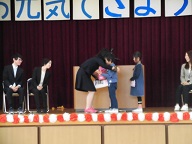 本日12日(金)第5時に、平成31年度の離任式がありました。年度当初の人事異動で5人の先生方が転退職されました。その5名の先生をお迎えしての子どもたちとのお別れの会でした。5年生が準備していただいた桜のアーチをくぐり入場しました。式の中では、今までお世話になった児童の代表が、作文を読んだりお花をプレゼントしたりしました。その後各先生方から児童へ向けてのお話がありました。どの先生からも「大寄小学校はあたたかい学校」といっていただきました。市歌や校歌では全員が気持ちを込めて歌えました。