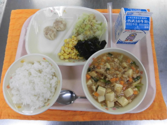 ★牛乳・ごはん・しゅうまい・海草サラダ・麻婆豆腐★