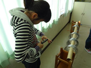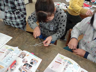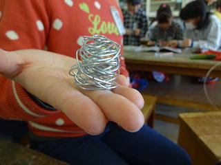 初めてのペンチを使い、針金を曲げたり、巻き付けたり・・・。