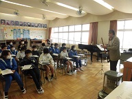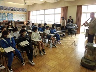 昨日5日(火)、5年生の音楽の授業は日本の伝統的な音楽について理解を深めることをねらいとした学習をしました。大寄地区より講師として高田 宏先生を音楽室にお招きし、尺八の紹介と講師の先生による演奏で「春の海」「鶴の巣籠すごもり」「ロマンス ヘ長調」を聴きました。尺八はなかなか音が鳴らず,難しいことがわかりました。美しい音色をきき伝統的な楽器ふれることは、児童にとって、貴重な体験になりました。ありがとうございました。