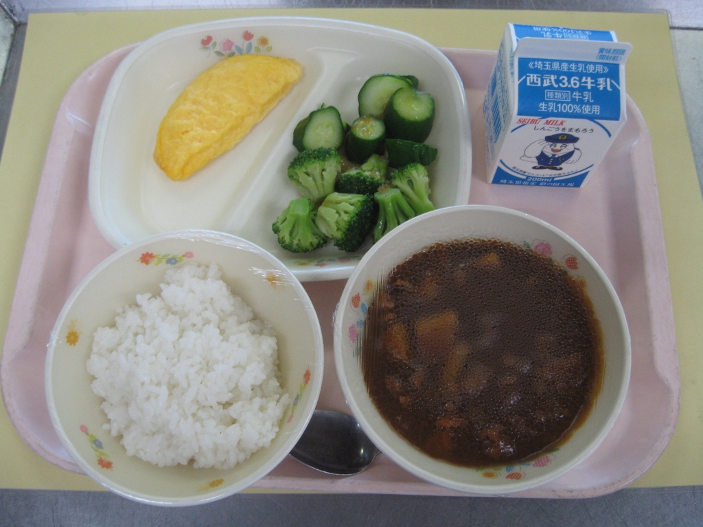 ◎牛乳・ハヤシライス・サラダ・オムレツ