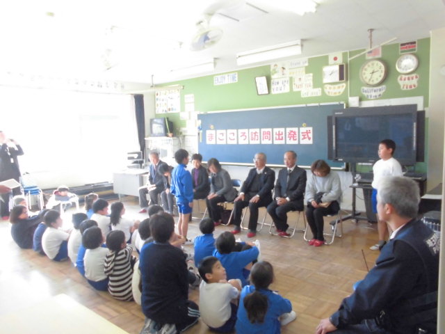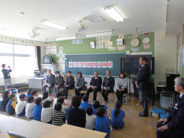 12月12日(火)午後1時10分から、「まごころ訪問出発式」がABCルームで行われました。4年生が世話をした花と手紙を、大寄地区にひとり暮らしをしているお年寄りの方にプレゼントします。