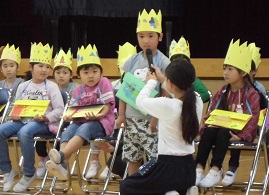 2~6年生の「歓迎の言葉」のあと、1年生一人ひとりが自己紹介をしました。