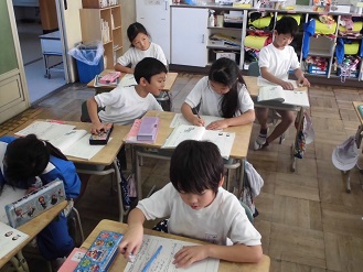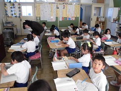 1年生が国語の研究授業をしました。1年生になった頃と比べると、しっかり作文を書くことができました。今日も課題のお話を自分なりに書き換えていく学習でしたが、みんな、しっかり学習することができました。