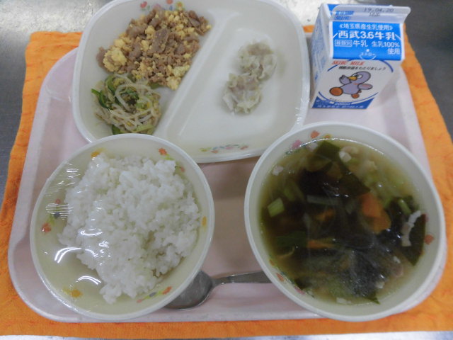 ★牛乳・ビビンバ・蒸ししゅうまい・中華スープ★