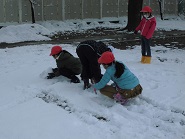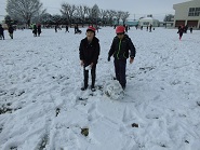 昨日降った雪で校庭が白銀の世界に包まれました。子どもたちは、雪を見るなり走りながら校庭にかけていきました。雪合戦をする子、雪だるまをする子、鬼ごっこをする子など思い思いに遊んでいました。雪を身近かに感じることのできた貴重な体験となりました。着替え等の準備ありがとうございました。
