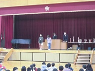 本日の朝会は表彰を行いました。2学期たくさんの児童が絵や感想文、運動関係(スポ少も含めて)、創意工夫展等の素晴らしい成績に対して賞状の授与を行い全校児童に紹介しました。名前を呼ばれると大きな声で返事してその場に立ったり、代表として壇上に上がりました。賞状が渡されると大きな拍手で祝福され、うれしそうな顔が見られました。おめでとうございます。