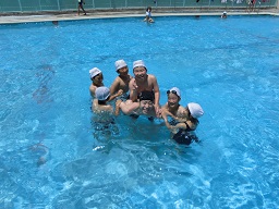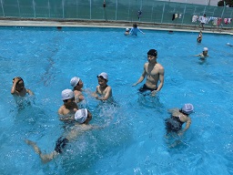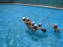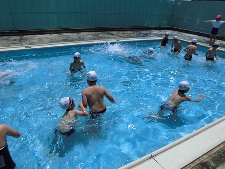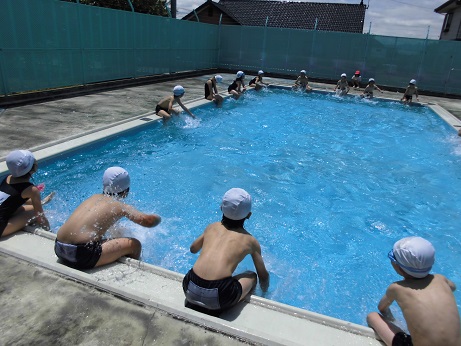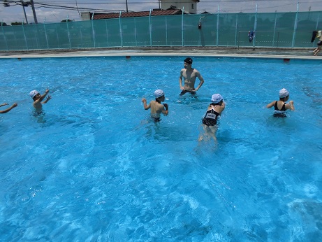 初めの、プール開き大会をしました。チームに分かれて、宝探しゲームをしました。