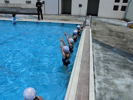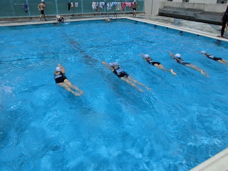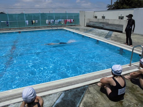 今日はアスリートクラブ事業で、大学生の先生にけのび、バタ足のポイントを教えていただきました。何回も練習して頑張ることができました。