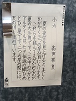 6/22日(土),23日(日)の2日間にわたり本庄市立本庄東小学校にて深谷市の代表となりました2名の作品が出品されました。放課後練習を含めてたくさんの時間をかけてた作品が堂々と飾られていました。5年清水優希さん6年高田果良さん(順不同)おめでとうございます。