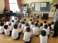 4年生の音楽の時間 外部講師の先生と一緒に授業しました