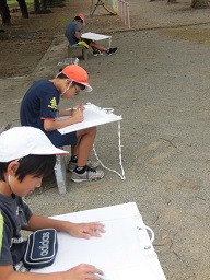 本日1時間目から4年生が熊野神社で、6年生は途中の時間から校庭にて写生会がおこなわれました。暑い中でしたが短い時間での取組でした。私語をするものもなく、教室の授業同様に黙々と真剣に取り組んでいました。