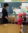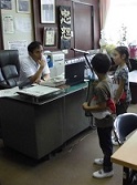 業間休みや昼休みを使って 先生方を訪ね、自己紹介をして自分の名刺を渡し 先生方の仕事を質問しました。最後に 先生方から 名刺をいただき 握手もしてもらいました。どきどきしながらも 大寄小学校の たくさんの先生方と ふれあう喜びを 体いっぱいに 味わうことができました。この活動で ますます 大寄小学校の 一員としての 自覚が高まったようです。