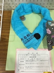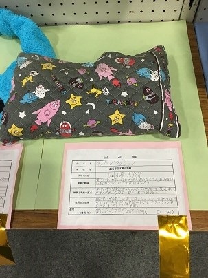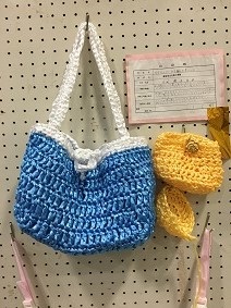 6年  本多美桜さん「普段でも使えるエコバック」、6年橋本侑依さん「すずらんテープで編んだ夏バック」6年小暮大翔さん「マッサージ クッション」、5年粂原龍空さん「ゼリーで冷え冷え」5年関苺果さん「らくらく物干し台」