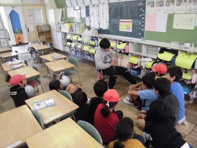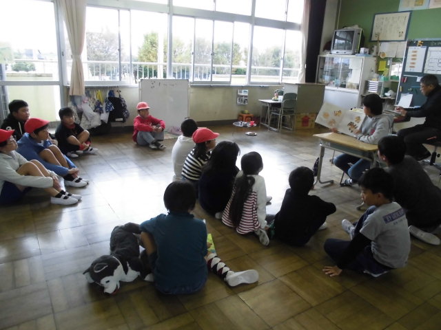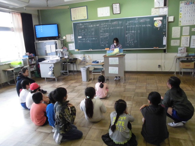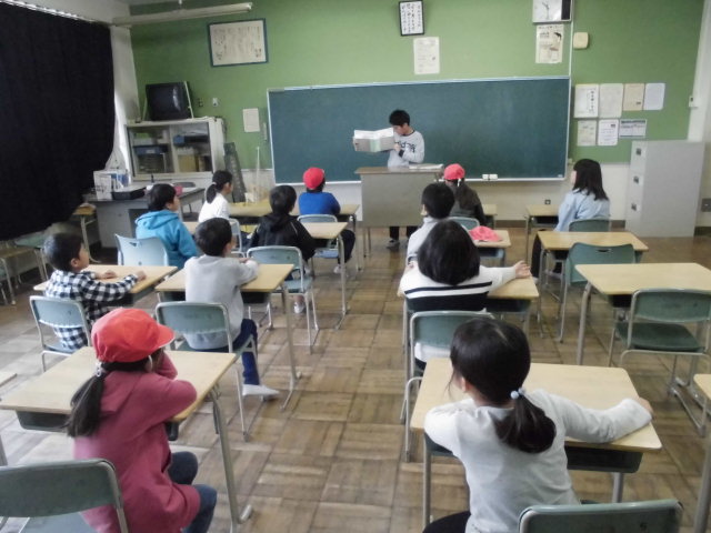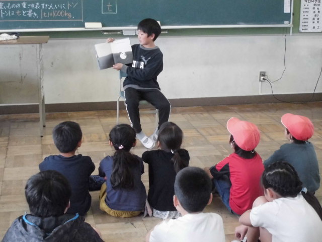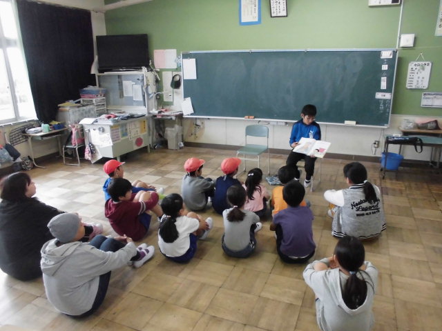 今日の業間休みに、たてわり読書がありました。たてわりチームごとに担当の先生の教室に集まり、6年生が本を読んでくれました。子どもたちは、本の楽しさを味わうことができたので、集中してよく聞いていました。読む本を準備してくれた6年生のみなさん、ありがとうございました。