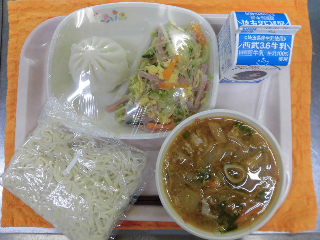 牛乳・キムチ入りゴマみそラーメン・中華サラダ・彩の国肉まん