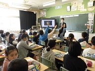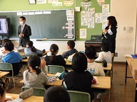 昨日18日(木)は第2時の5年生の外国語活動に参加しました。今年度新しくEAT英語アシスタントティーチャーの吉岡知子先生の様子を教育研究所の外国語指導アドバイザーの篠崎先生小林先生も授業を見に来ていただきました。担任の新井先生が中心で授業を進め、外国語の活用や表現などのでは吉岡先生が持ち前の英語力を発揮してお手伝いする形でした。2人での授業がはじめてでしたが子供たちはとても意欲的に取り組んでいました。