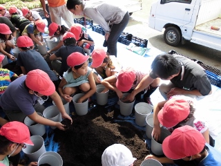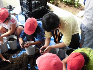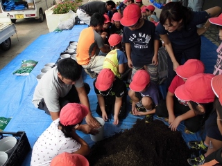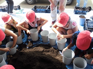 3日(木)に深谷市花き生産組合連合会主催の花育教室が開催されました。本校では、3年生が体験しました。花育教室では、深谷市の主要な農産物であるユリの歴史や生産状況を教えていただき、郷土深谷について理解をましました。その後、組合の人やJAの人たちに指導を受けながら、実際にユリの球根を鉢に植えました。子ども一人一人が二鉢作り、一つは、家に持ち帰り育てます。もう一つは、組合の方が持ち帰り、育て、10/31、11/1の「全国ゆりサミットin深谷」に展示するそうです。子どもたちは、貴重な体験・学習をすることができました。