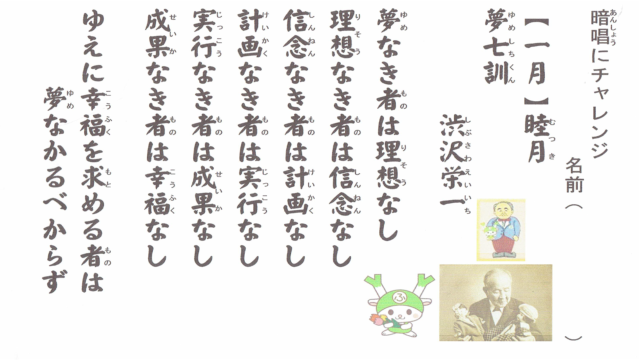 1月の暗唱「夢七訓 渋沢栄一」