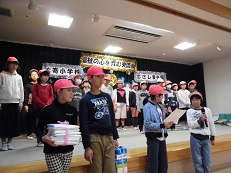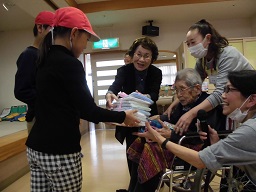 先日5日(水)に4年生が福祉体験も含め、学校で集めたたくさんのティッシュとタオルを市内のむさし愛光園に訪問し贈呈式に参加しました。福祉施設の見学と説明を受け、お年寄りとの交流では児童の合唱や手作りのペンダントをプレゼントし、肩もみや会話もしました。貴重な体験をさせていただきました。そして、社会福祉協議からたくさんの図書を頂きました。ありがとうございました。