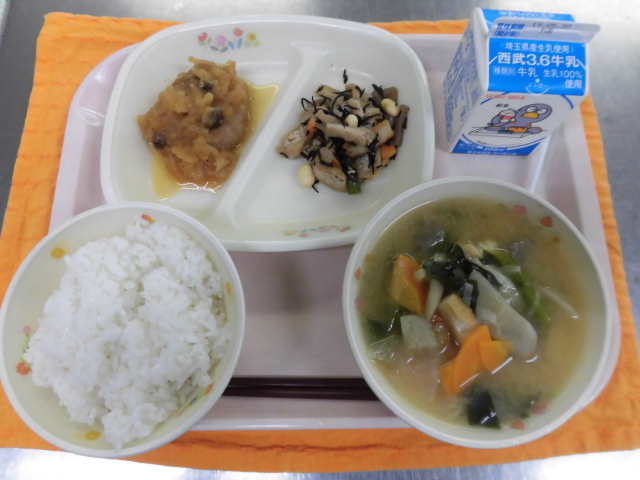 ★牛乳・ごはん・和風ハンバーグ・大豆の磯煮・野菜椀★