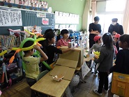 教室の発表は、生活科の学習「うごくおもちゃランド」をしました。みんなが楽しく遊べるように何度もおもちゃの改良をしました。来てくれた人たちに大きな声であいさつや遊び方の説明をしていたのが印象的でした。普段の学習の成果が出せて良かったね♪