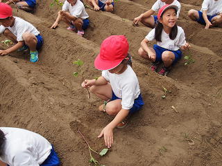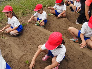 今日はさつまいものを植えました!