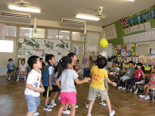 チームに分かれて、風船をつくゲームです。