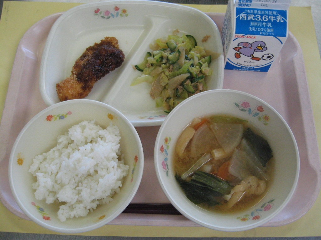 牛乳・ごはん・ソースカツ・ヘルシーサラダ・みそ汁