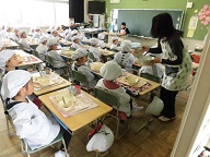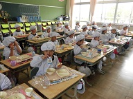 昨日17日(水)は1年生はじめての給食でした。今日は事前に6年生とアシスタントティーチャーの清水先生、少人数指導の難波先生も応援いただいた結果、チャイムが鳴っていって見るともう食べ始めていました。どの児童も前を向いて落ち着いて笑顔で食べていました。おかわりほしい人と聞くとたくさんの児童が手をあげていました。何人かに聞くと給食はとてもおいしいといっていました。