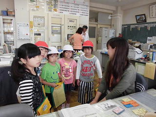 生活科の学習で、学校にいるたくさんの先生方に会いに行きます。