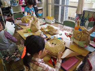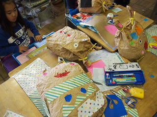 今日は図工の時間に「くしゃくしゃぎゅ」という