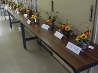 日本文化についての学習内容で茶道と華道の体験学習をしました。1、2時間目は華道の体験でした、「生け花」というか写真にあるようにハロウィーンも入れた花の飾りつけをつくりあげる体験でした。