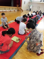 続けて3、4時間目は茶道の体験でした、体育館に毛氈を敷き、様々な活動を体験しました。歩き方、座り方様々な作法そしてお茶等も口にして楽しい活動となりました。茶道華道の先生方ありがとうございました。