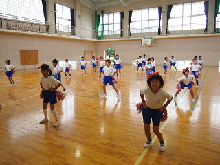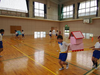 今日は雨だったので、体育館で