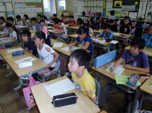 毎朝、始業後すぐに1分間の腰骨を立てる運動に取り組んでいます。腰骨をたてることで、姿勢もよくなり、すっきりした気持ちで授業に取り組めます。