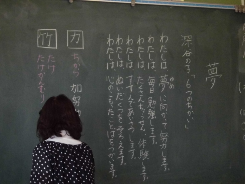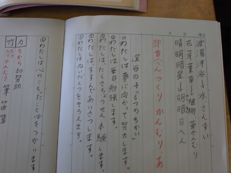 4年生は国語の授業です。最初に深谷の子「6つの誓い」を書き写しながら、勉強しました。そして今日の本番、漢字のつくりを勉強しました。まだ、やさしい字ばかりでした。同じつくりやへんの漢字がいっぱい探せるといいですね。