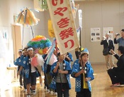 先日の2日、「けやき祭り」を行いました。2年生の元気な神輿担ぎの入場からけやきまつりが始まりました。300名以上のたくさんの方々に学校へ足を運んでいただき、子どもたちは、生活科や総合的な学習の時間での学習のまとめを一生懸命発表しました。発表を通して、他の人に伝えることを勉強したり、伝える楽しさや喜びを感じたり、祖父母の方との交流を楽しんだりと楽しい時間を過ごすことができました。また、全体発表では、11/6の音楽会に向けて4年生による合唱や5年生の米作り研究の発表、お米当てクイズなどがあり、盛り上がりました。今年の米の収穫量は459kgでした。昼食は、焼き芋、大寄米を炊いていただき、縦割り班で協力して、「おにぎり」づくりをしました。おかずのみの給食も提供していただき「収穫の秋」を味わいました。