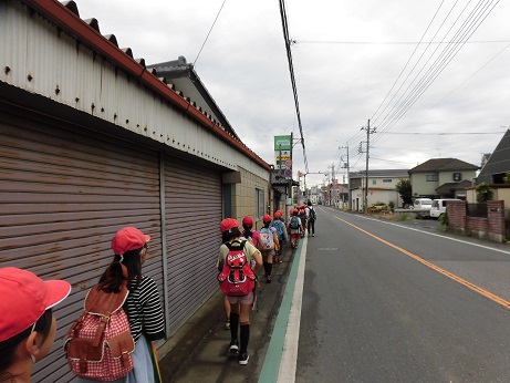 コープみらい深谷店へ向かっています。一列に並んで歩いて行きます。
