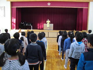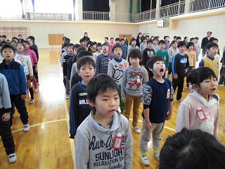 元気いっぱい、市歌と校歌を歌いました。