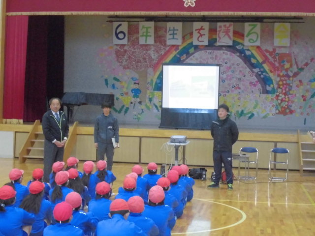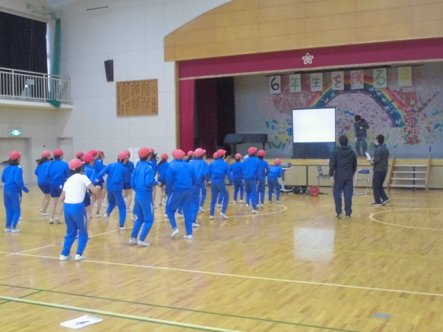 深谷中学校の田中先生と小林先生にお越しいただき、体育の授業を行っていただきました。中学校の授業の様子や気を付けることなどを教えていただき、子供たちも真剣に話を聞いていました。
