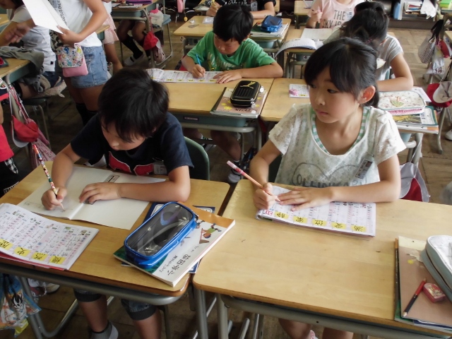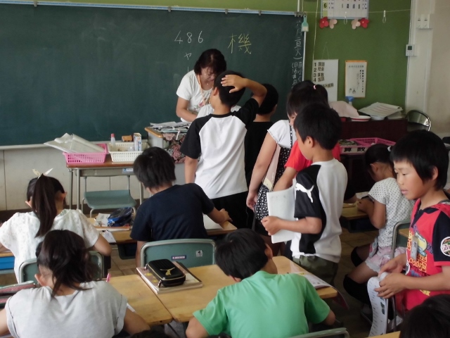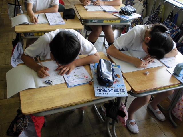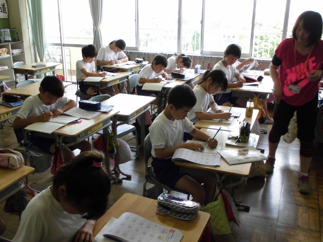 1学期が半分終わった今日の授業の様子です。子どもたちは暑さに負けず、学習に取り組んでいます。