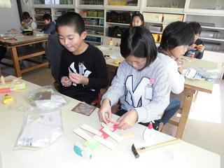 デザインを考え、色をぬって、くぎを打っています。