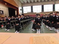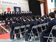 本日8日(月)午後1時30分より深谷中学校の入学式がありました。たくさんの保護者のみなさんも参加し盛大にかつ厳粛に行われました。新1年は158名そして大寄小学校からは31名が進学し、ひとりひとりの生徒も大きな返事ができとても安心しました。途中に校歌紹介があり、3年生の校歌隊による素晴らしい歌声を聞きました。また、職員紹介では55人の紹介もあり、何もかもが多くの人数で驚くばかりでした。卒業生の活躍を楽しみにしています